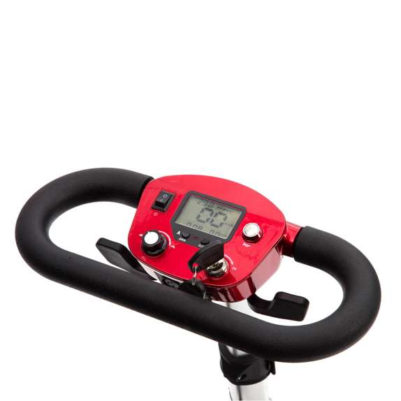 The AutoFold Elite Scooter features a striking new design with a fresh metallic silver finish and stylish silver wheel hubs. It's a first in its class of remote auto-folding pavement scooters to feature Shock Absorbing front and rear suspension, designed to provide extra comfort for an exceptional ride. It also includes a new Delta bar and removable armrests for additional comfort, it comes with a fob for remote controlled folding operation, LED headlight and a light up digital LCD screen.