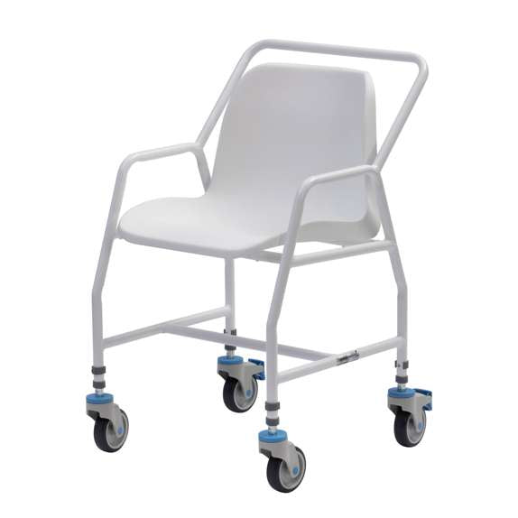 The Tilton Mobile Shower Chairs are adjustable height, mobile shower chairs with fixed armrests featuring a comfortable moulded plastic seat and a steel frame coated with hard wearing, peel resistant and anti-corrosive thermoplastic for longevity. Swivelling castors for manoeuvrability with either 2 or 4 brakes. There are models available with detachable arms for easy transfers.